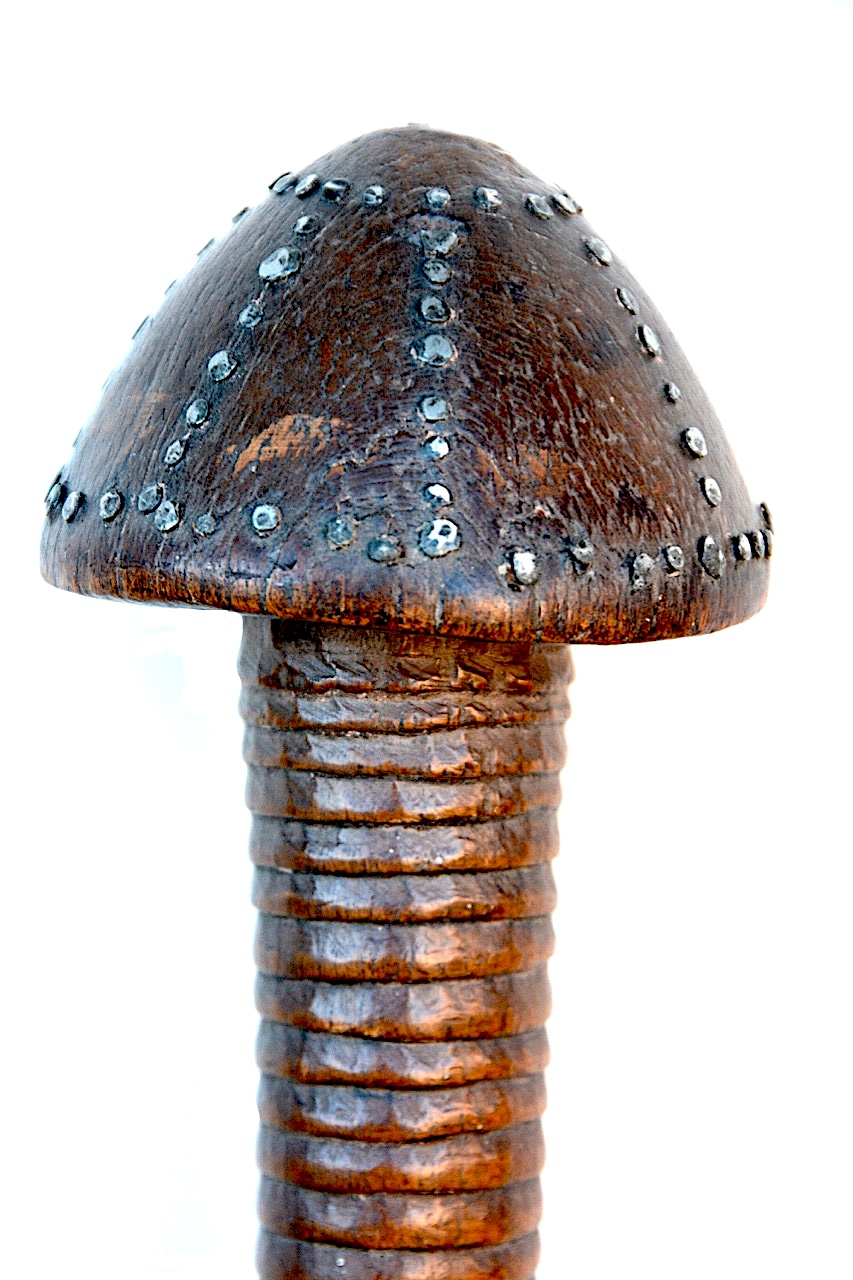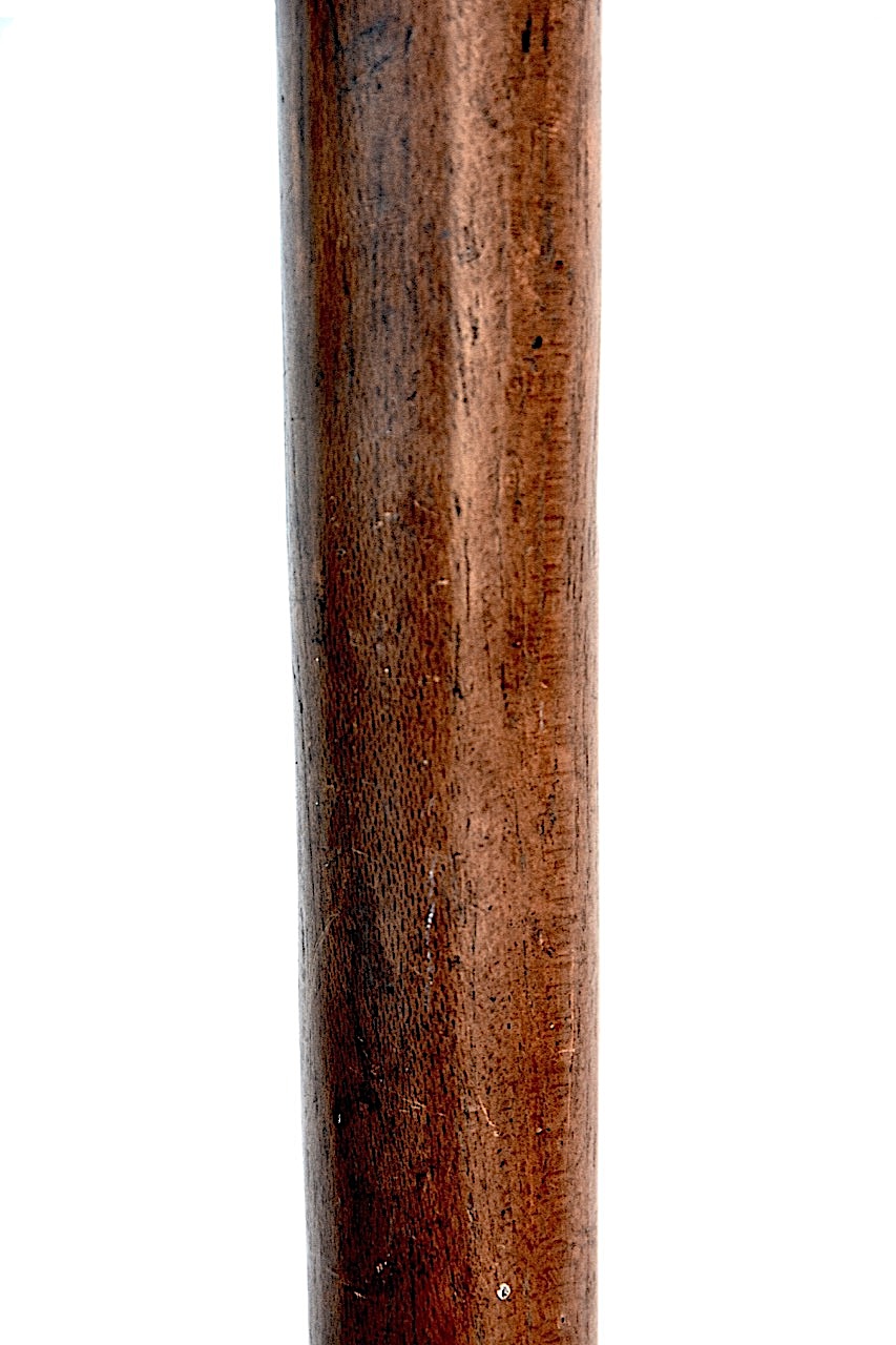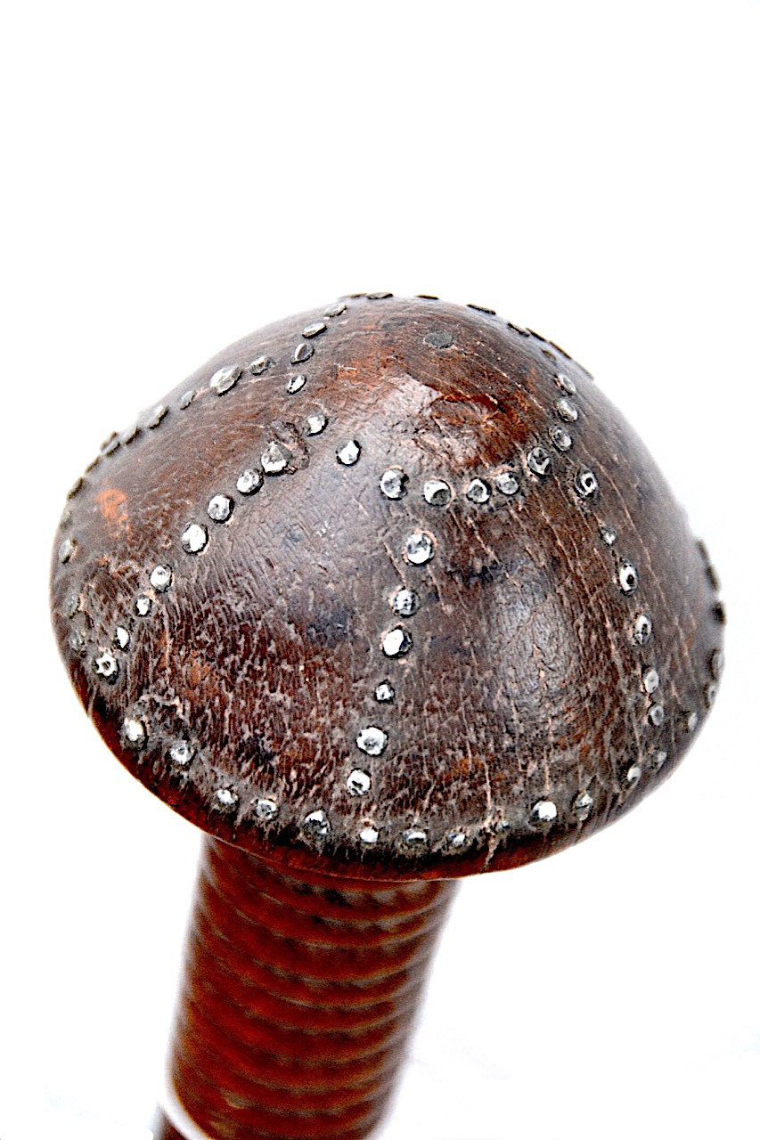 Faite d’une seule pièce en bois assez clair avec une patine bien lisse, cette arme possède une belle tête en forme de champignon.