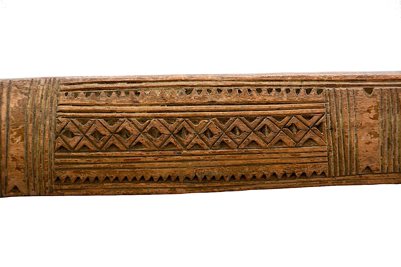 C’est le plus long, dentelé en relief avec, au milieu, un quadrillé de losanges et des ciselures concaves bordées sur les côtés de trois tracés linaires parallèles.