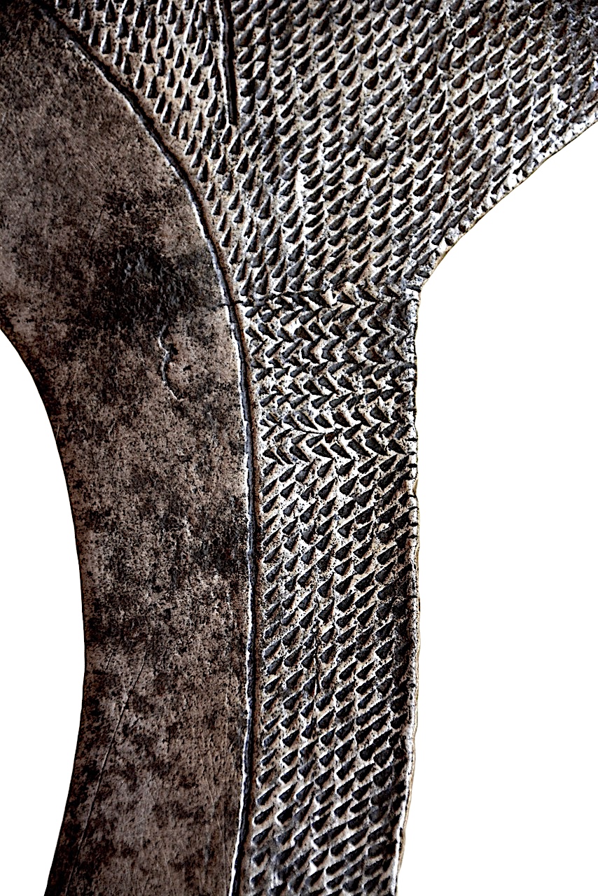 Dans la décoration ciselée de la lame, les Lia favorisaient un groupement d’une bande dense, remplie d’incisions en flashs.
