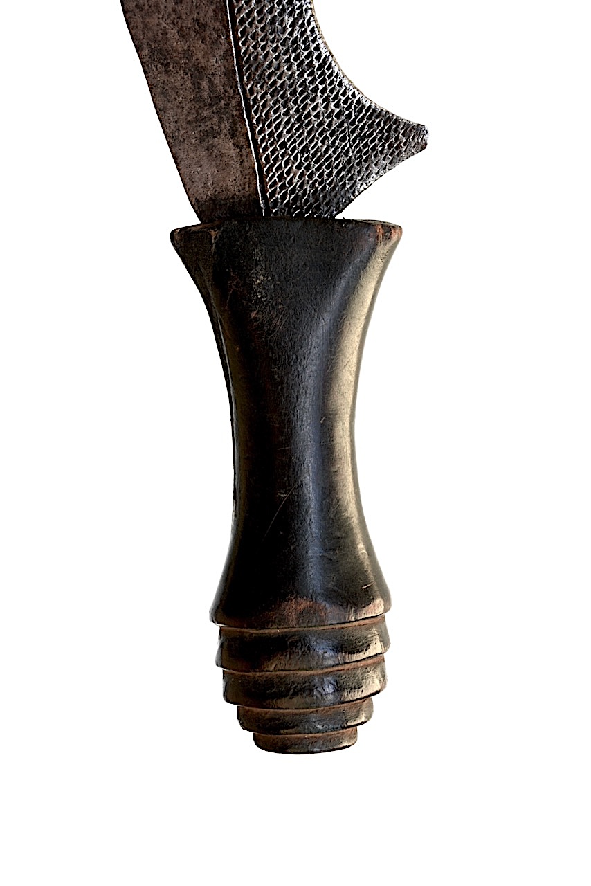 En fait, ont peut considérer que c’est un dérivé des fameux couteaux d’exécution nommés » ngulu « , qui a été forgé par un petit nombre de peuples d’Afrique centrale.