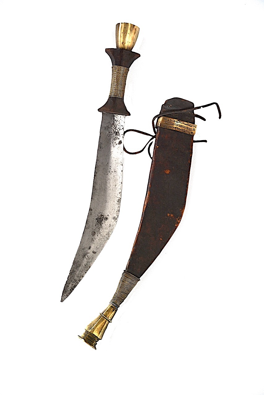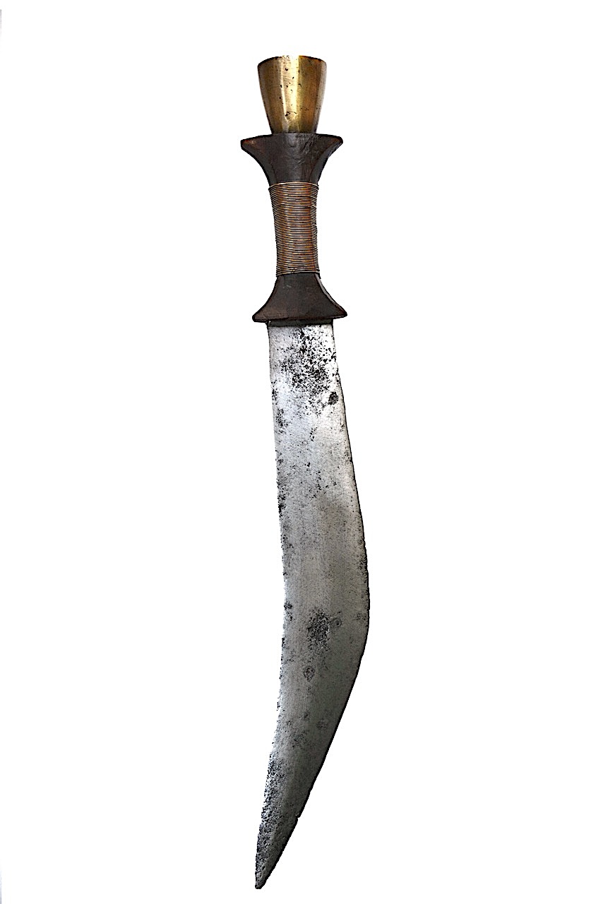 Couteau courbe des Somali à lame épaisse avec axe central plus épais en recto-verso.