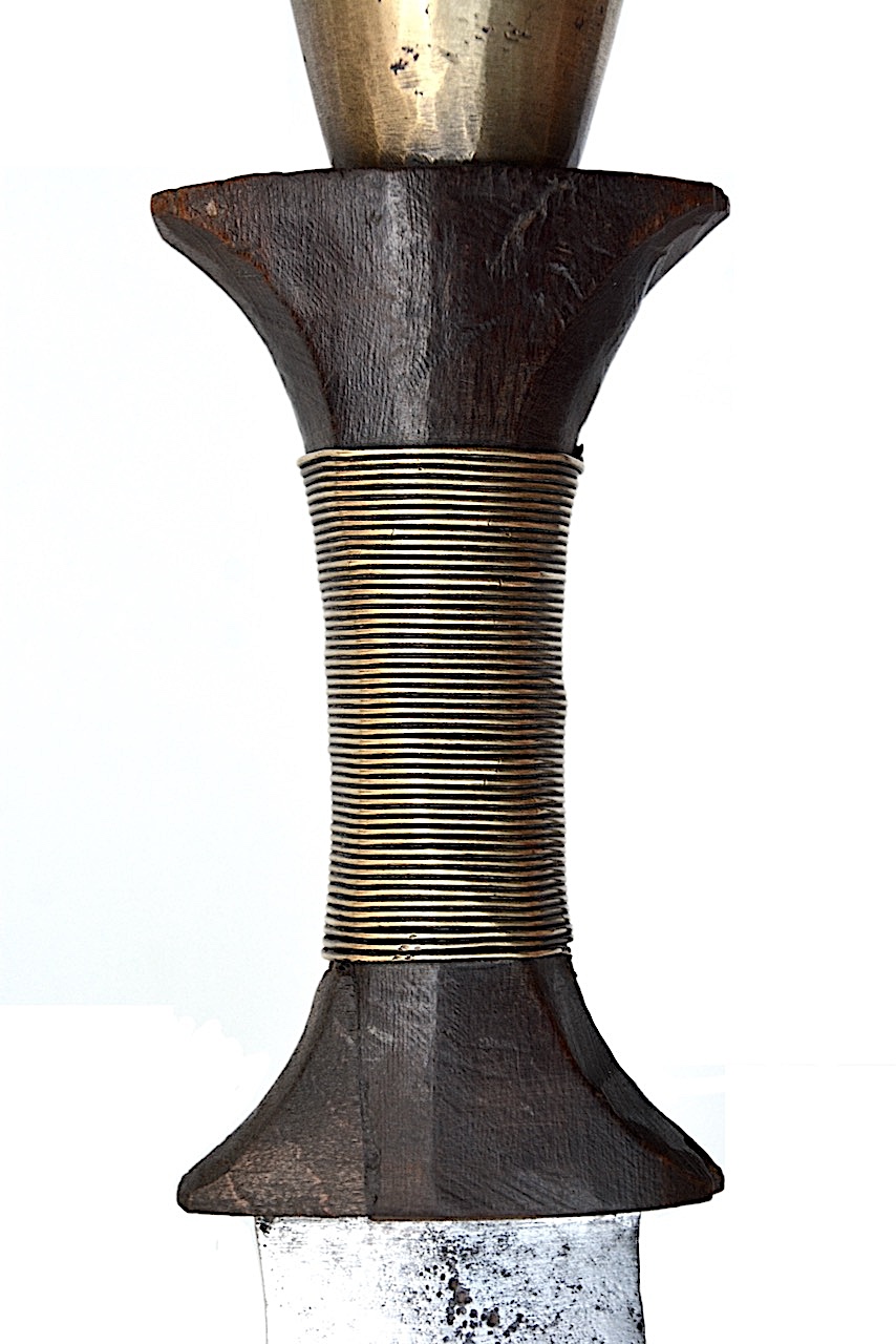 Le centre de la poignée est habillé d’un enroulement de fil de laiton.
