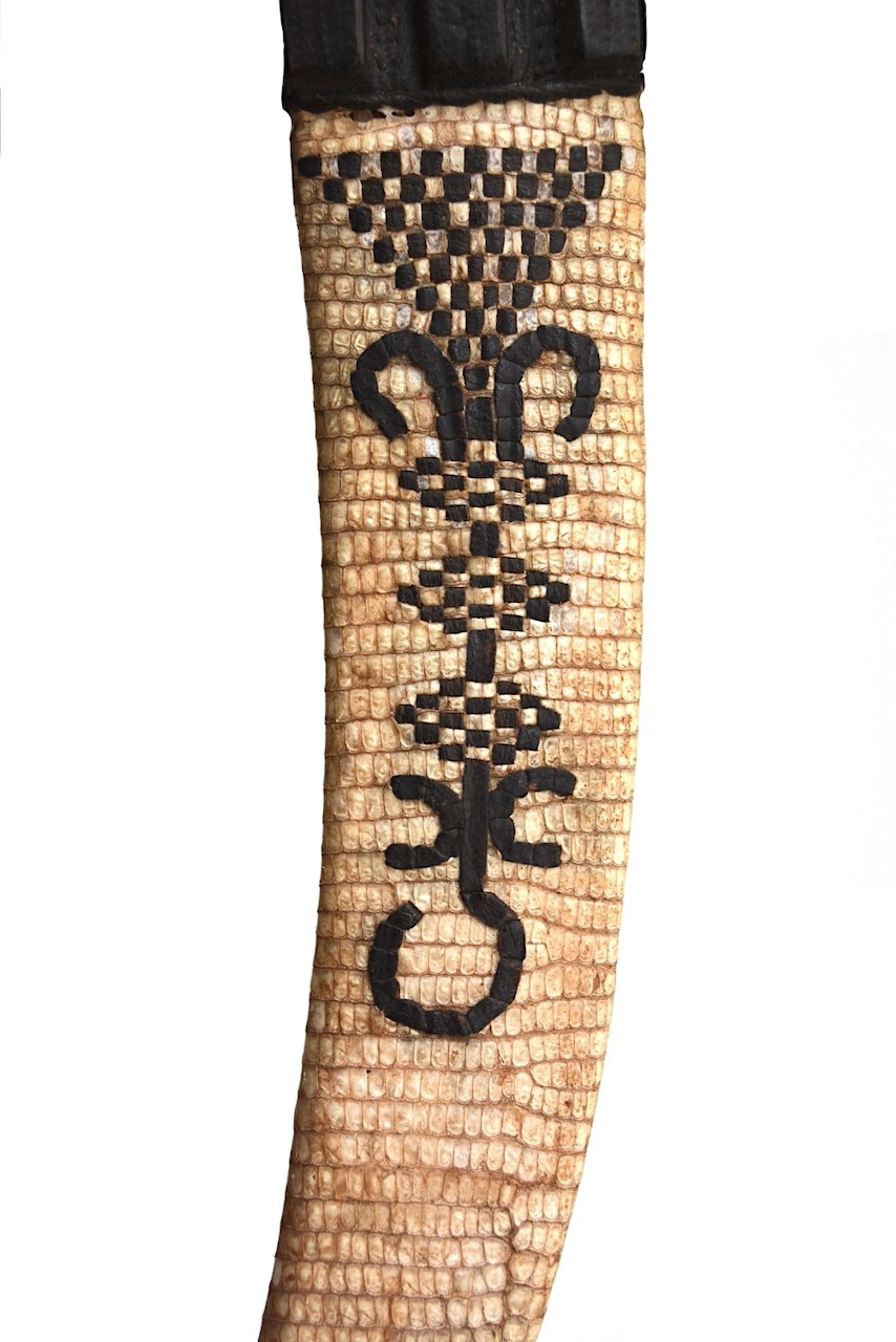 Entre deux, un bel habillage de peau reptilienne à écailles écrues.