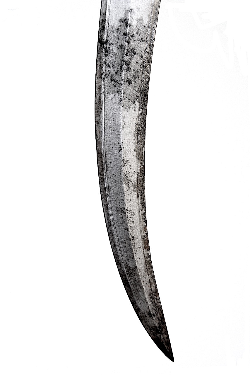 Couteau courbe de fabrication Tedda, beaucoup moins courant que les lames droites.