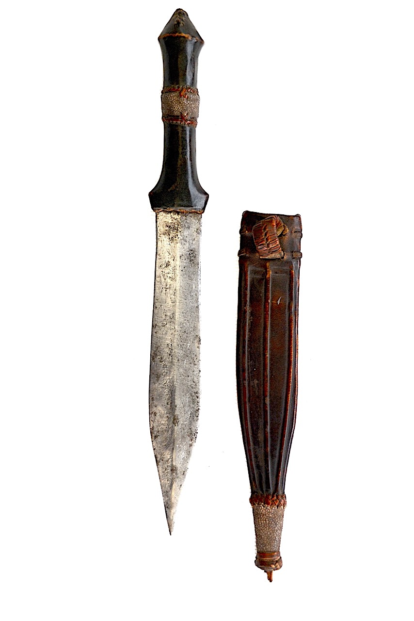 Couteau droit à lame lancéolée avec un très léger étranglement au premier tiers de la longueur.
