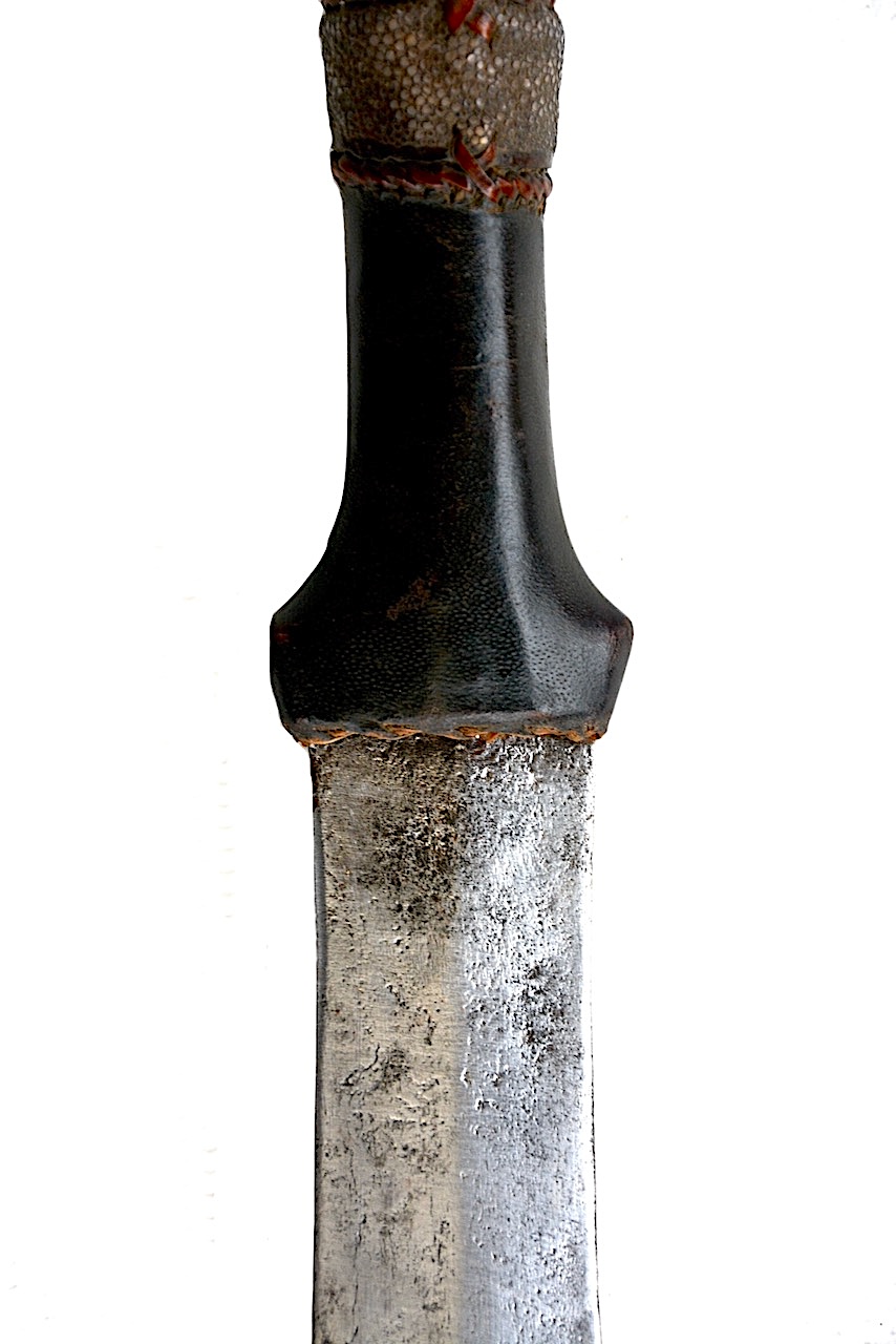 Le bas du fourreau est également habillé avec de la peau de raie fixée avec du rotang également