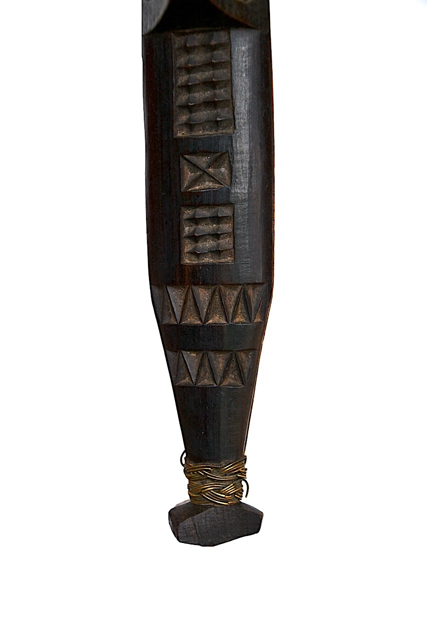 L’utilisation abondante et raffinée du fil de laiton est une caractéristique de ces couteaux de cérémonie Shona.
