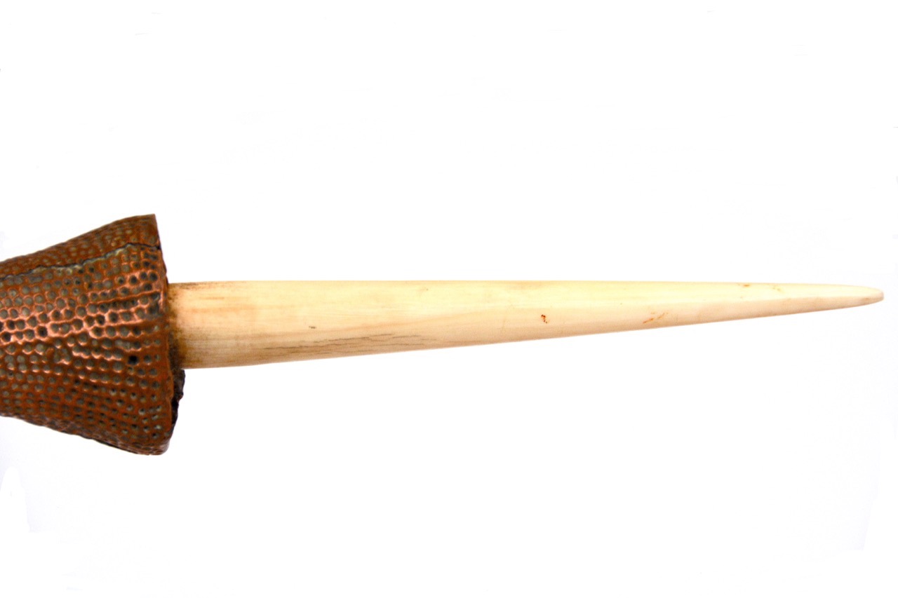 J’en connais même un qui a une pointe en ivoire avec un cabochon de cuivre couvrant la pointe en partie.