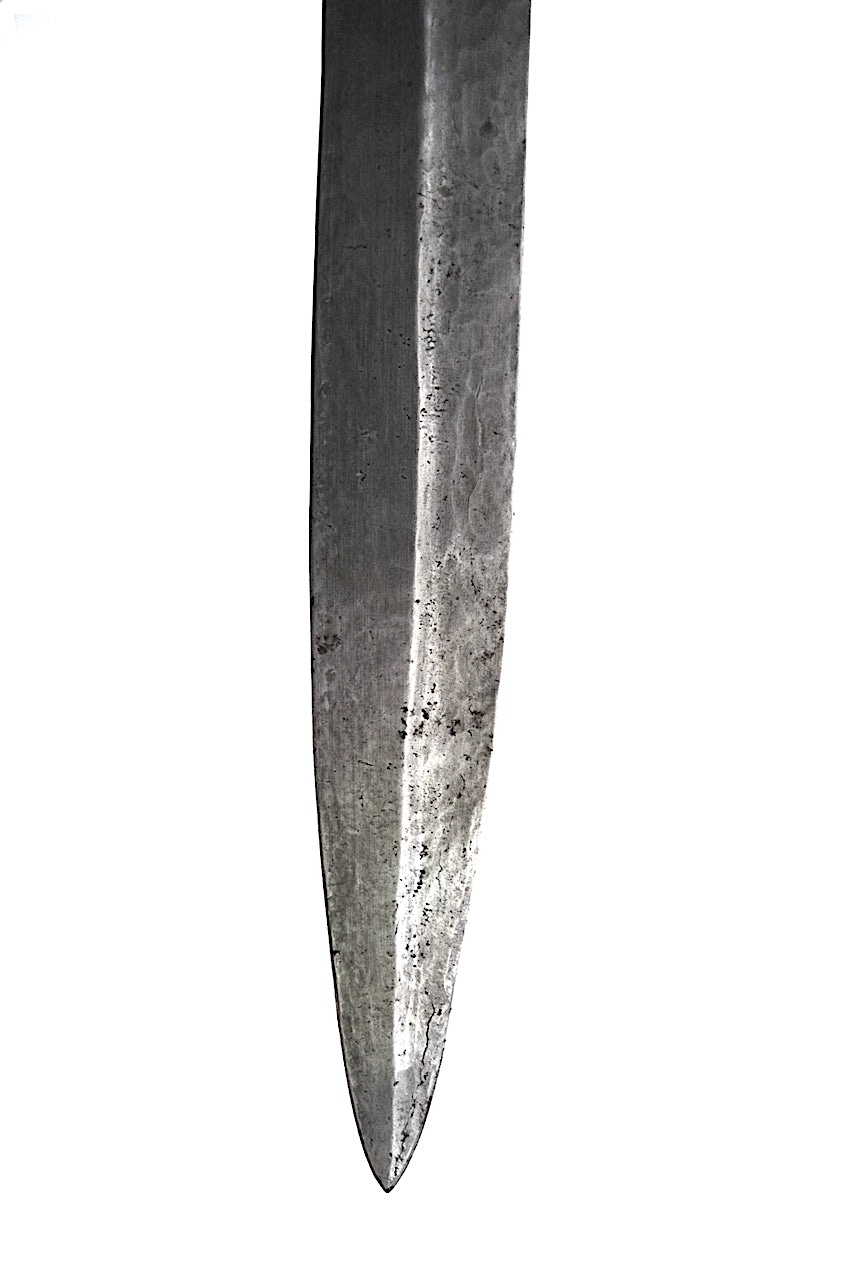 Ceci rend la lame beaucoup plus rigide, d’autre part elle est bien affûtée et présente des traces fines de martelage.