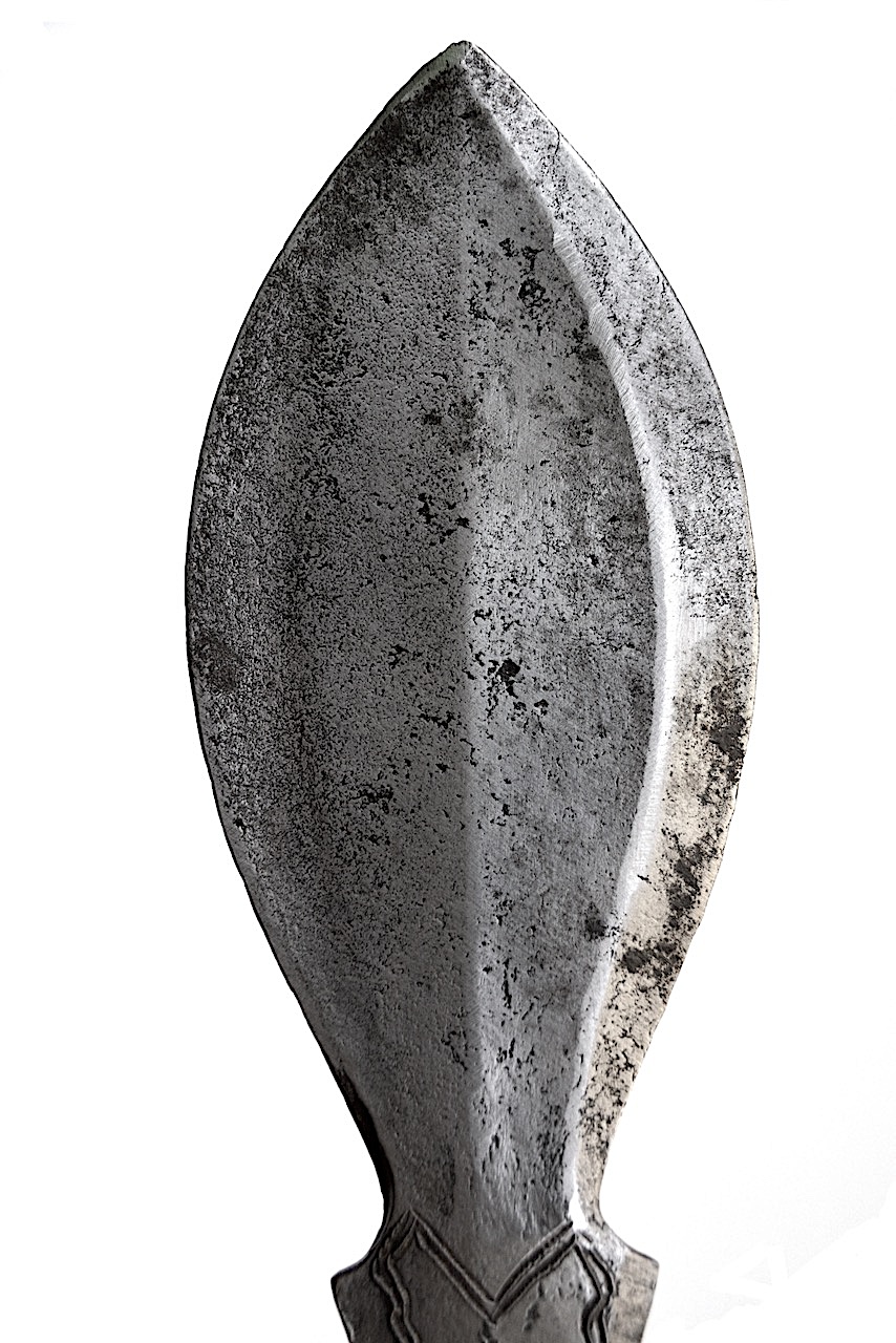 Le corps est épais et plat, légèrement resserré en son milieu, évasé en extérieur aux deux tiers pour nous présenter une spatule en forme de feuille ovoïde.