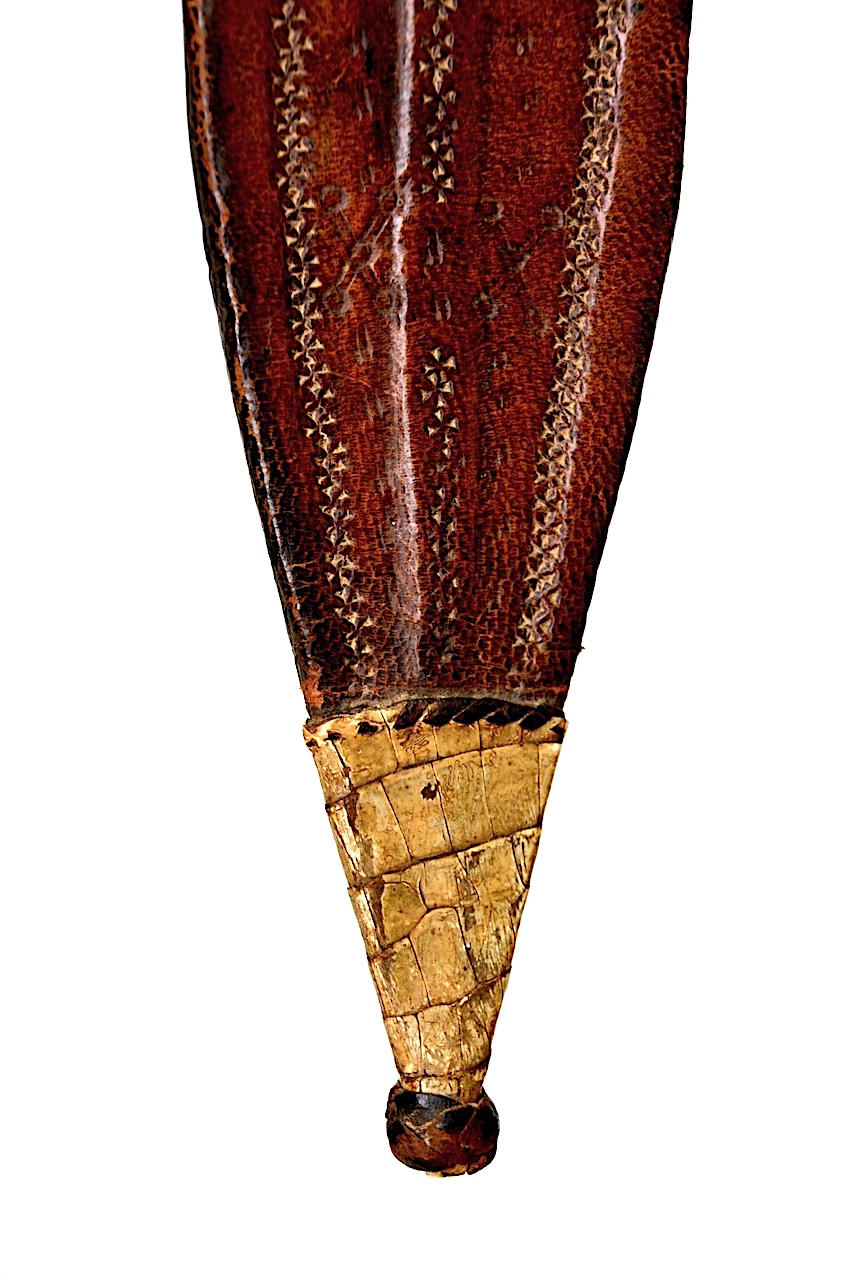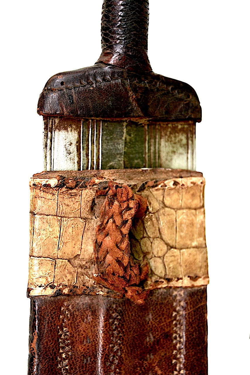 La forme terminal traditionnelle des Tedda a sa base couverte en partie par du cuir également.