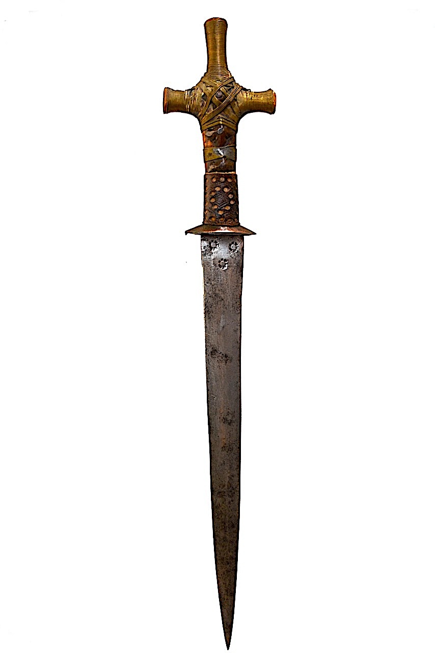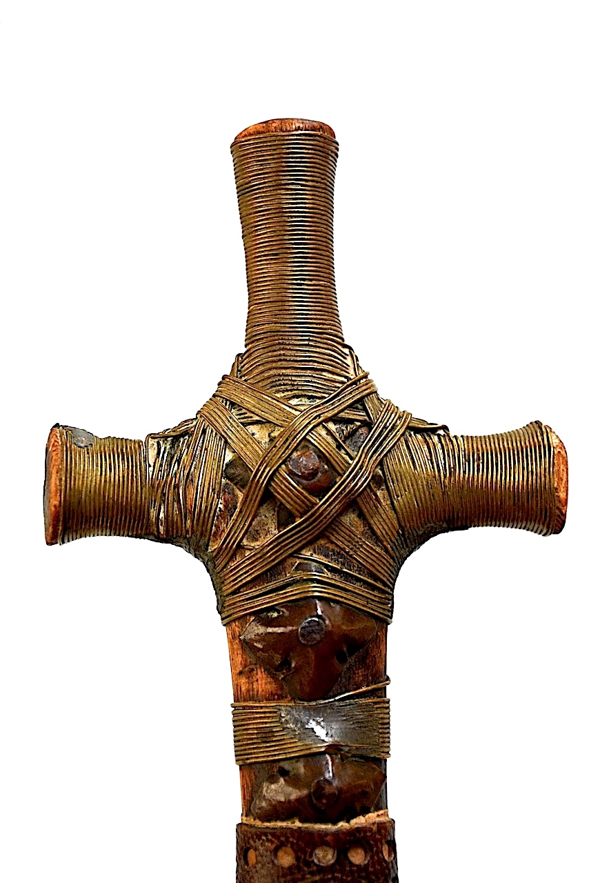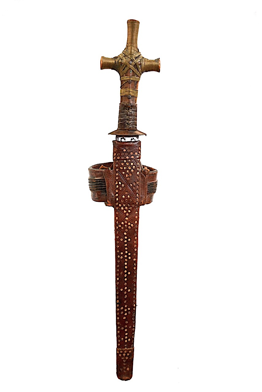 La lame est droite, pointue et la monture en forme de croix d’Agadès.