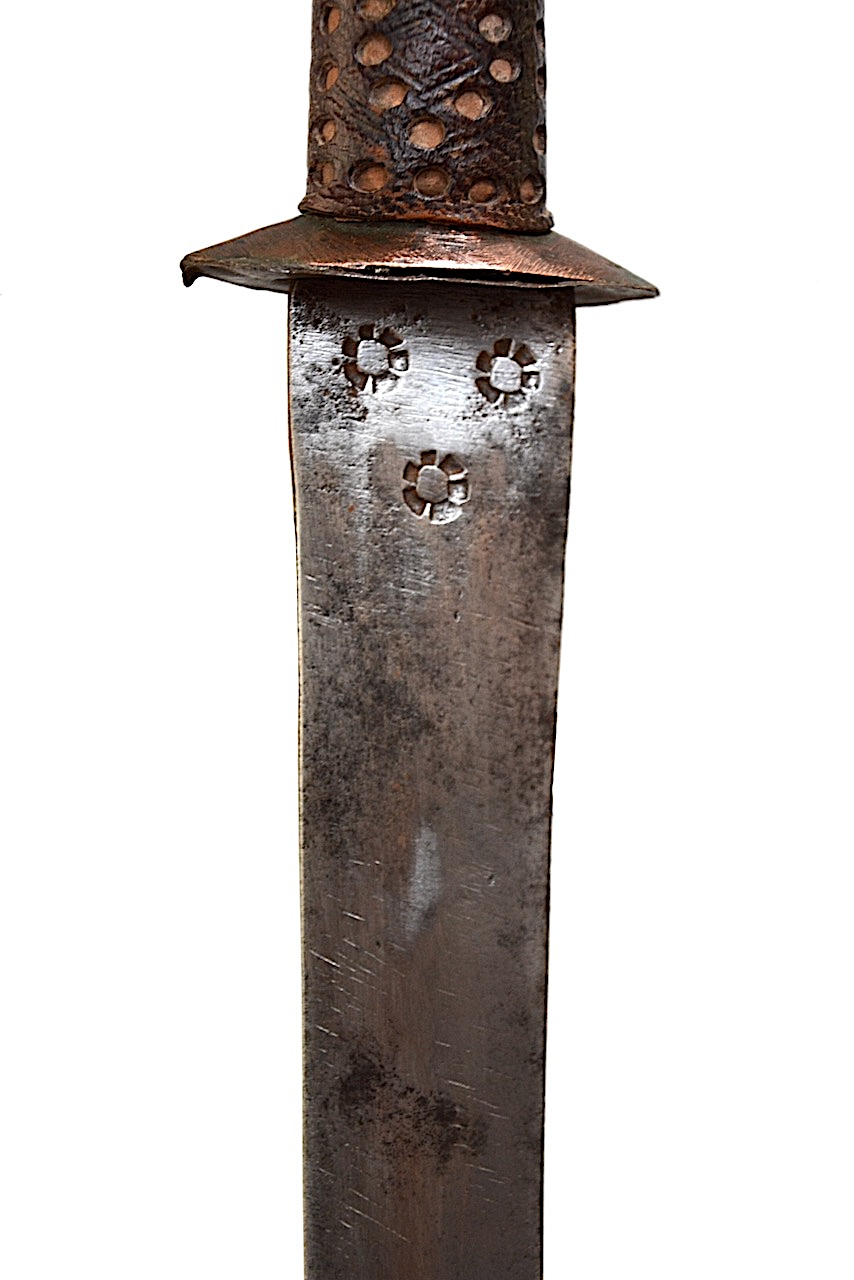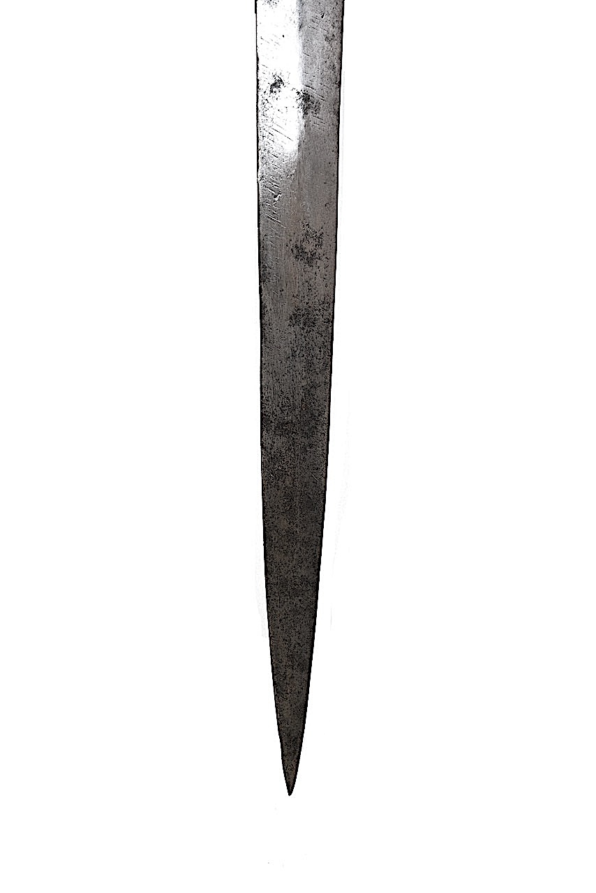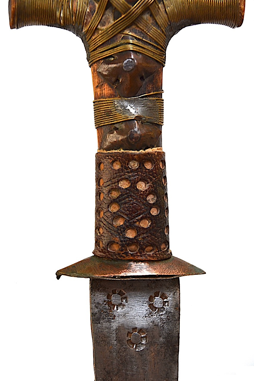 La lame est droite, pointue et la monture en forme de croix d’Agadès.