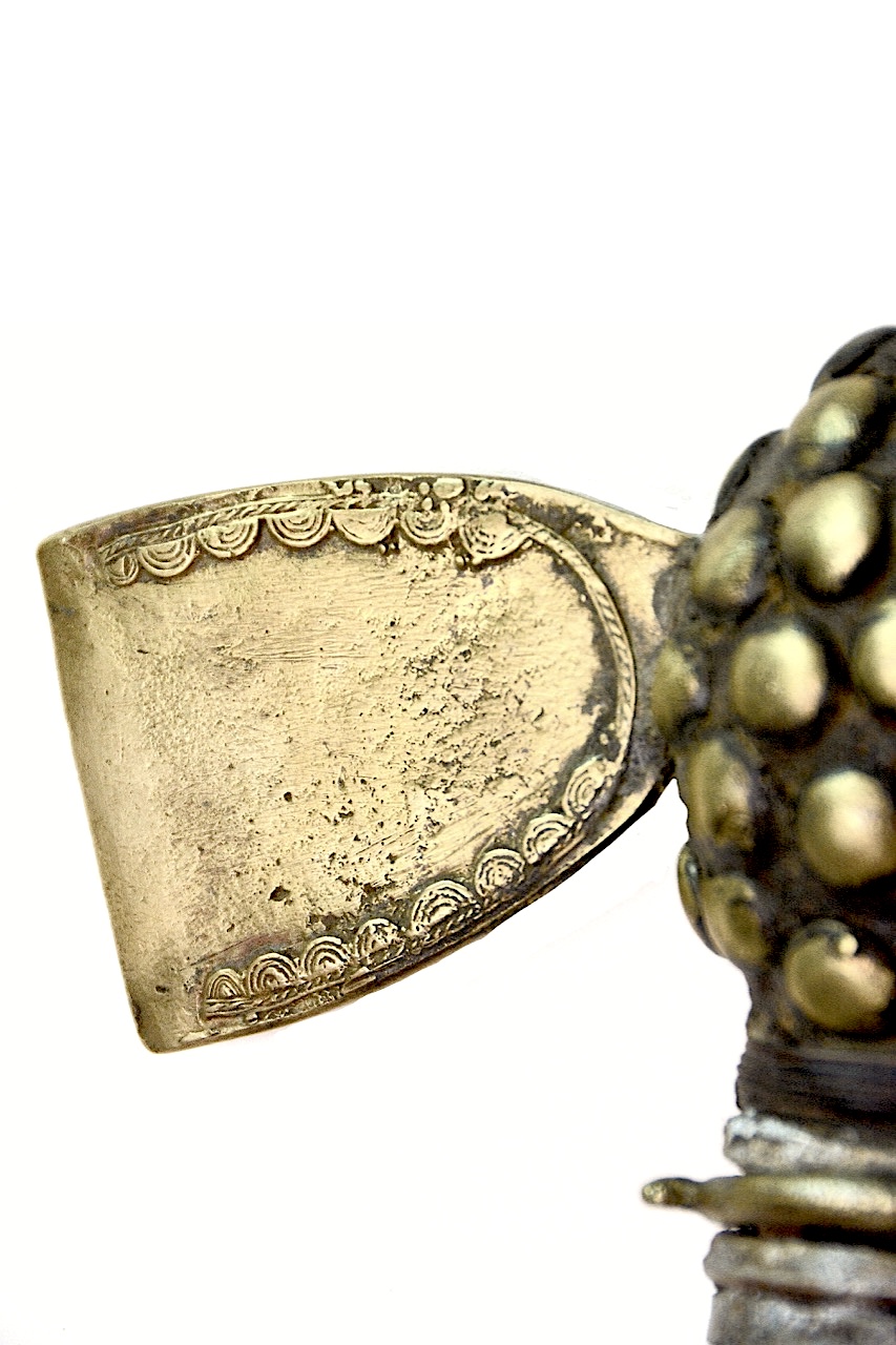 Une petite lame trapue en laiton à la cire-perdue est ancrée dans le bulbe.