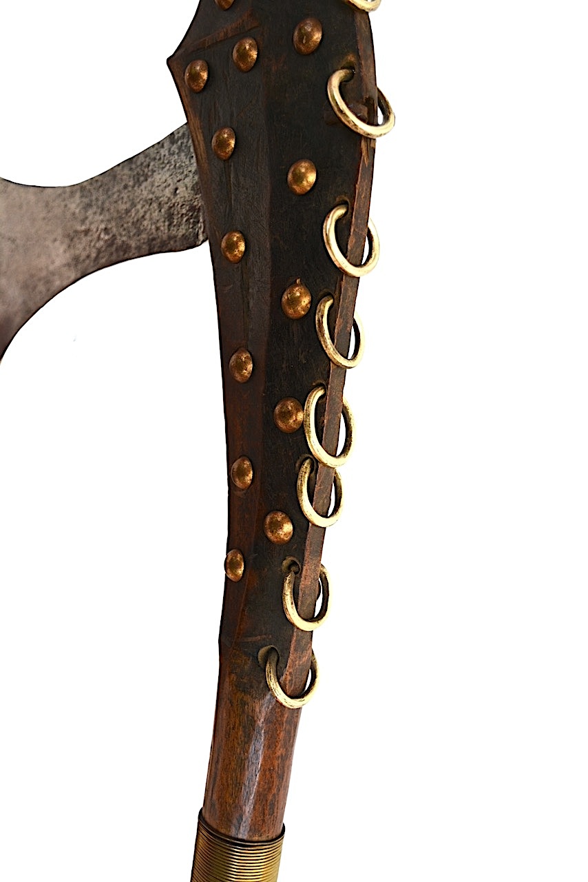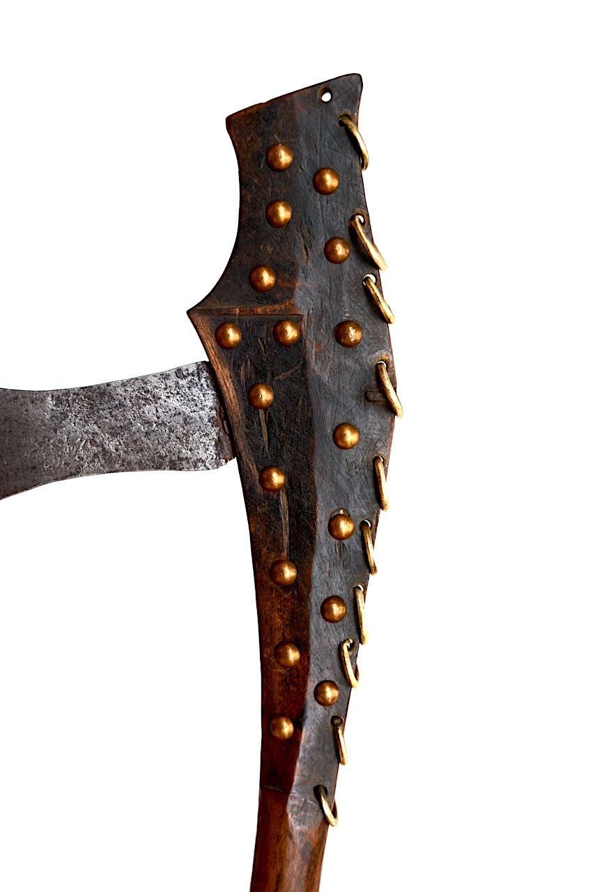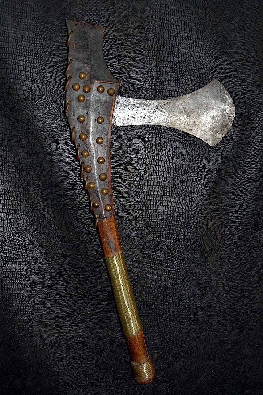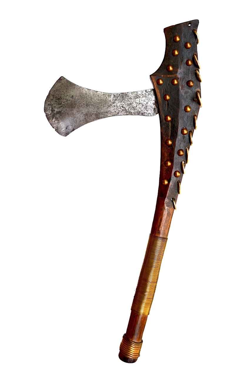 Quant aux haches de guerre, elles ont apparemment été abandonnées plus tôt que les couteaux ou épées courtes puisqu’elle sont nettement plus rares dans les musées et les collections privées.