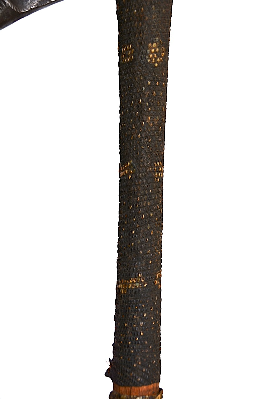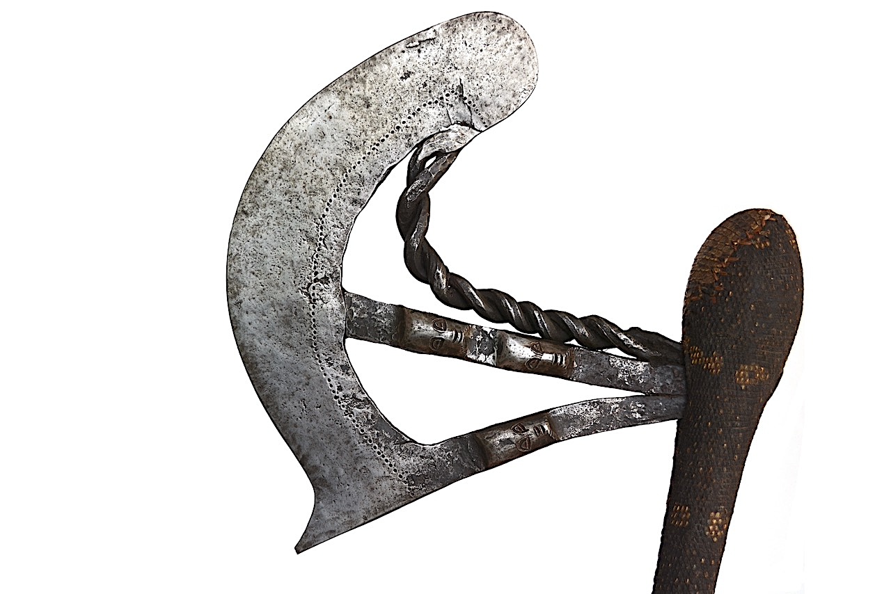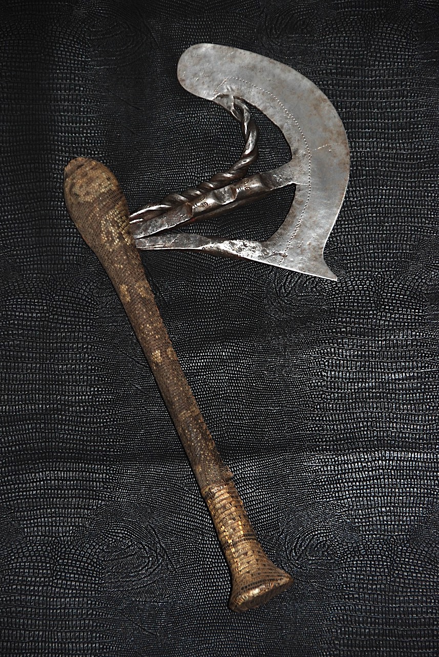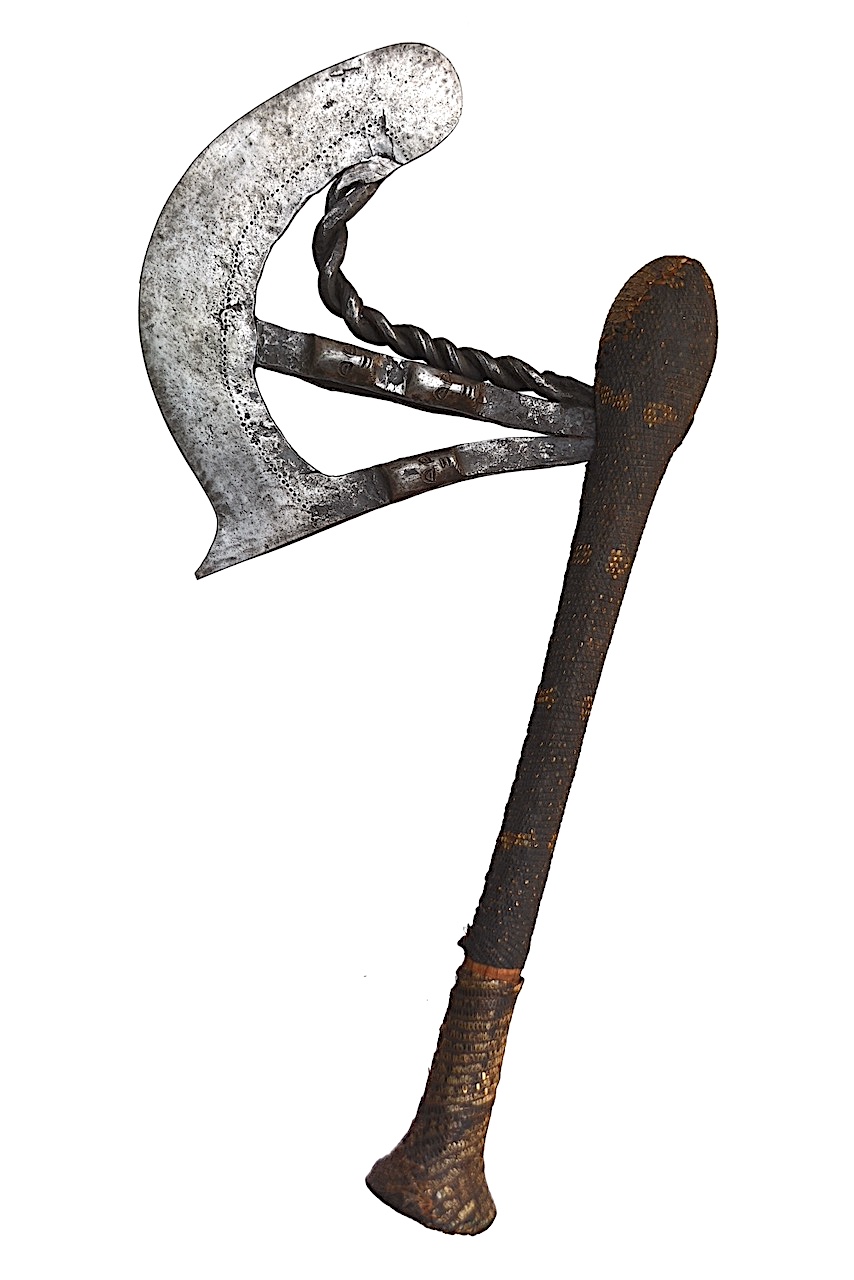 Belle hache du 4ème groupe à lame non symétrique à deux branches principales et une torsadée d’un bout à l’autre.
