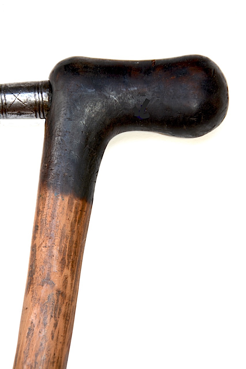Manche en bois de Berlinia giorgii* avec tête en angle droit noircie et extrémité terminale en arrondi.