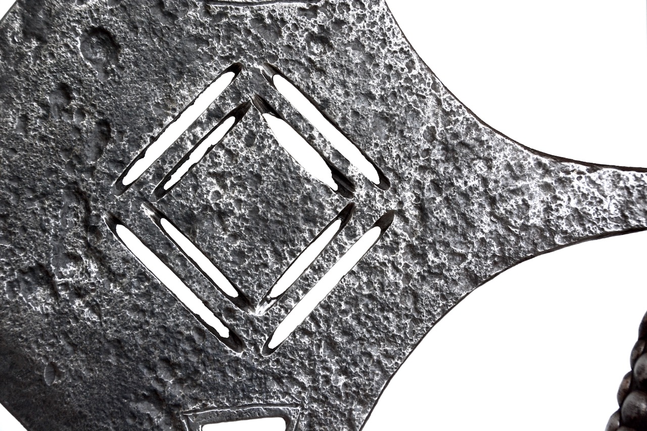 La  surface de forge est assez grossière et crevassée par endroits, peut-être est-ce dû à de l’ancienne rouille enlevée.