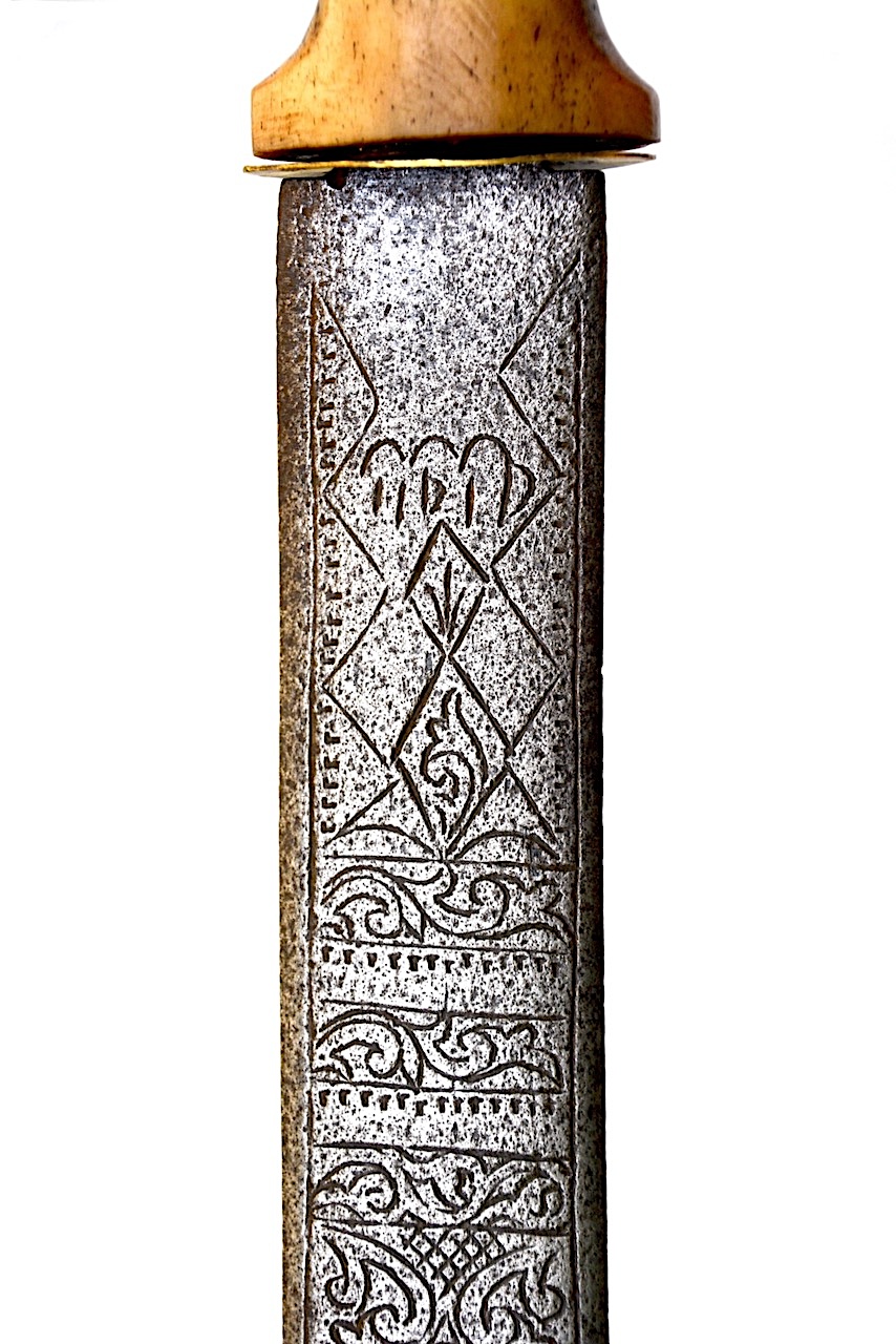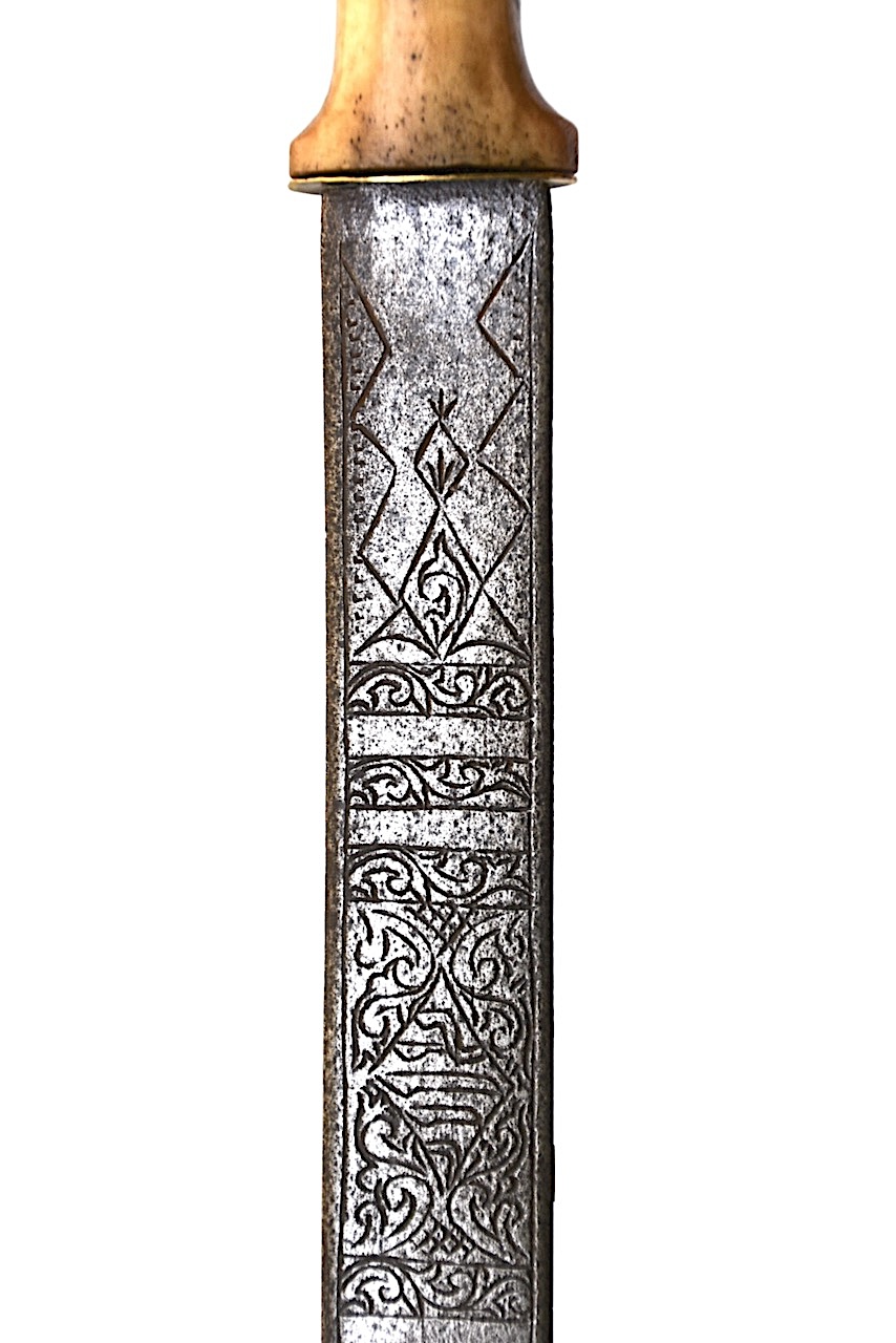 Cette épée nous vient du Soudan, la lame est assez épaisse et légèrement bombée sur sa largeur recto-verso.