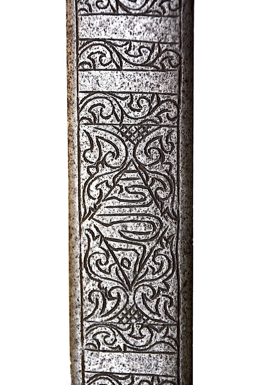 Sur une face, en haut sous la chape, se trouve une sorte de signature en arabe (voir photo).