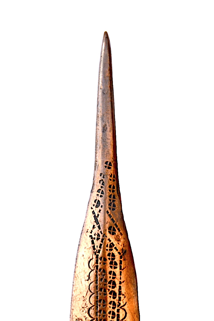 Couteau de notable Mandingue, probablement du haut Niger avec lame en cuivre épaisse et effilé en bout en dard perforant.