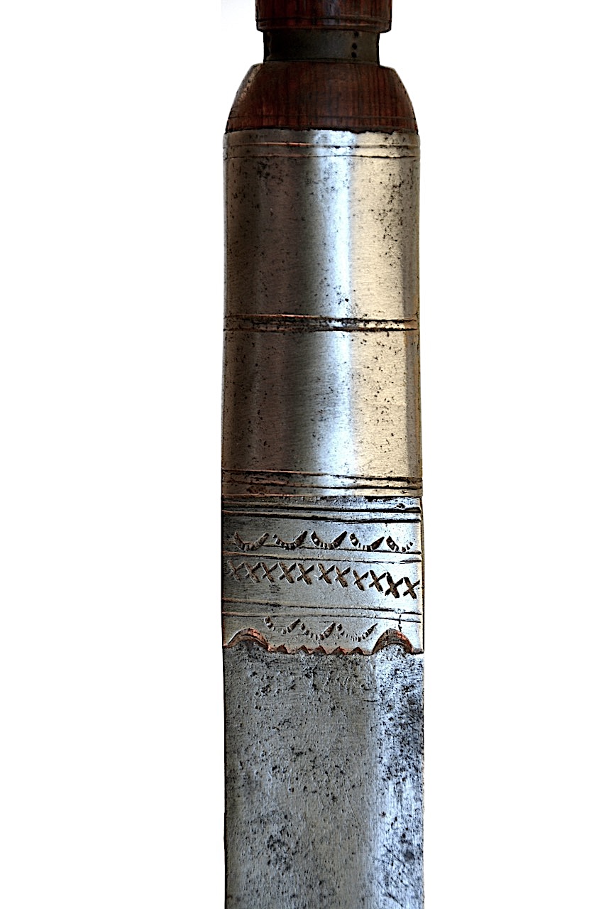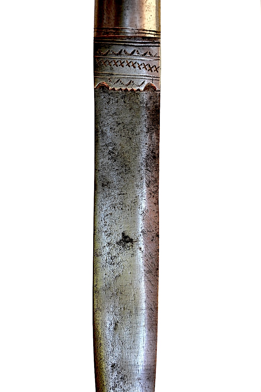 Beau couteau long à lame lancéolée, de largeur régulière et bout pointu.