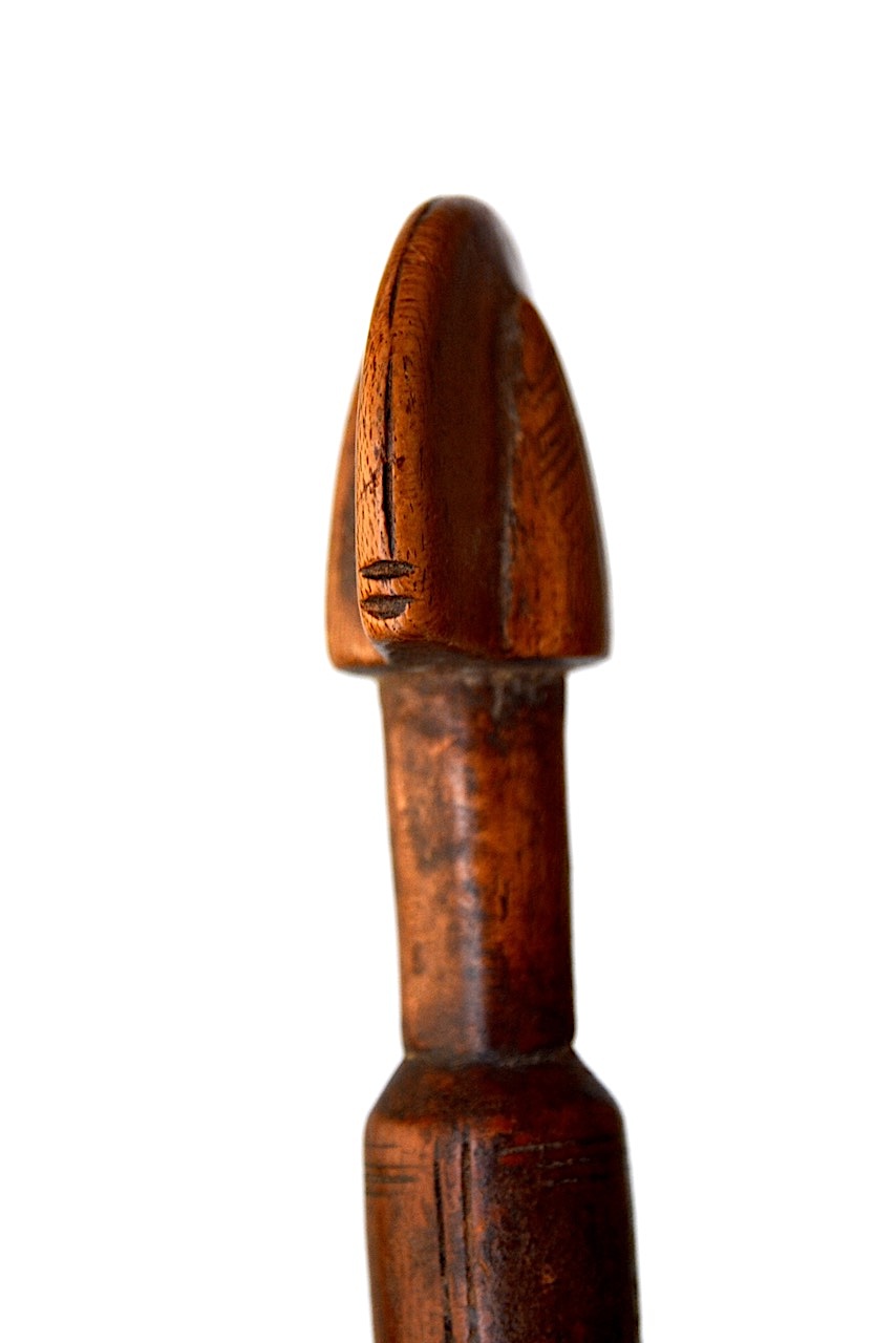 Cette représentation est très design, montée sur un cou lisse, le tout étant parfaitement usé, poli est patiné par le temps.